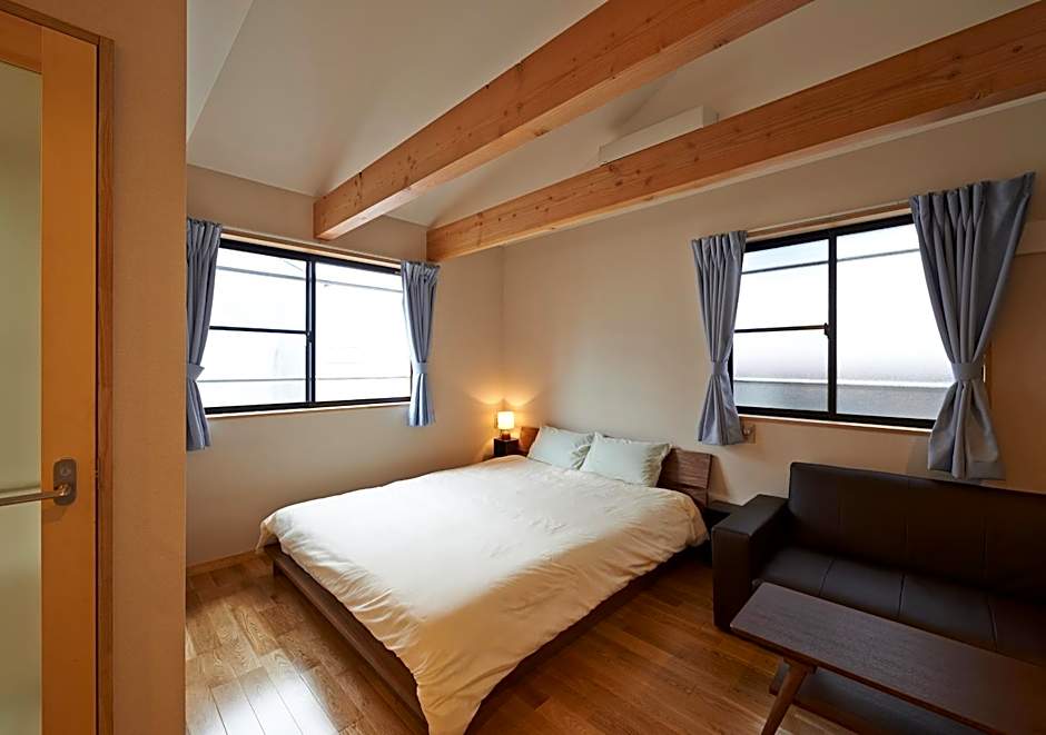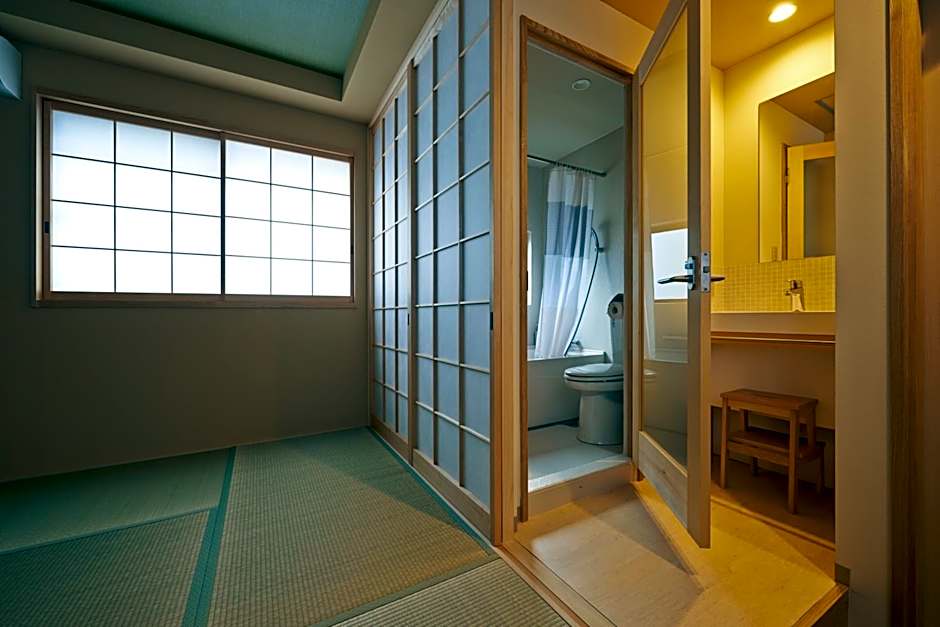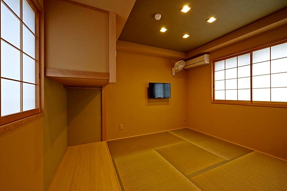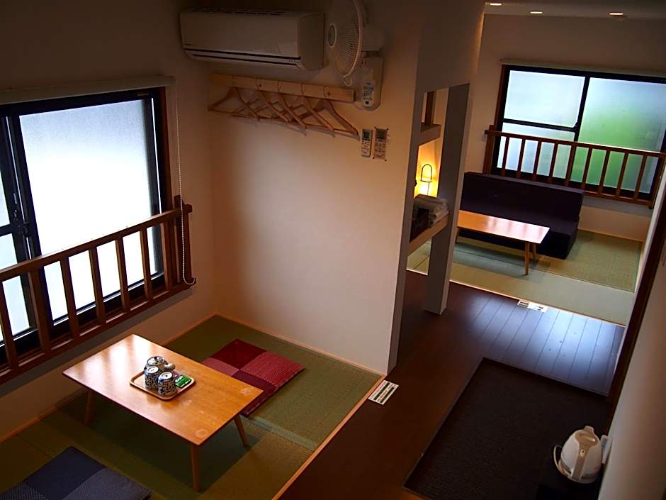 Features traditional style with Tatami (woven-straw) flooring, comes with a Japanese interior funitures. It has 1 futon bed and 1 folding mattress sofa can be used if there is a extra guest accommodated at a surcharge. Bathrooms and toilets are shared. Children under 10 years old cannot be accommodated in this room.